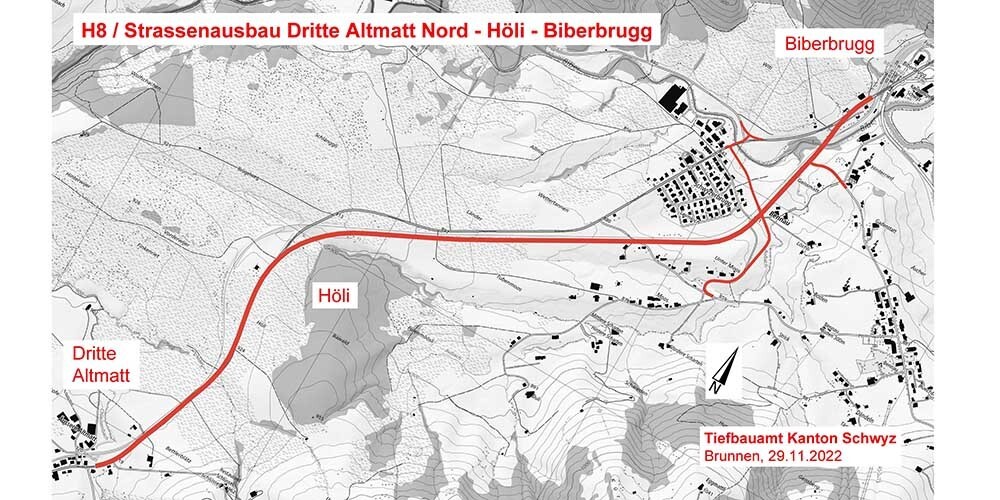 Seit 1969 (!) läuft das Ausbauprojekt der innerkantonalen Verbindungsstrasse H8. Jetzt hat der Regierungsrat das Ausbauprojekt für den letzten Abschnitt zwischen Biberbrugg und der dritten Altmatt genehmigt.