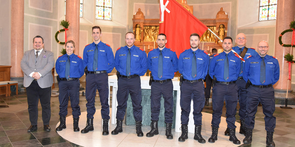 Regierungsrat Xaver Schuler, Vorsteher des Sicherheitsdepartements, und Polizeikommandant Bruno Suter sprachen zu den Anwesenden. Im Anschluss wurden insgesamt 47 Korpsangehörige in ihrem Dienstgrad befördert und zudem durften vier Mitarbeitende nach der erfolgreichen Absolvierung des internen Lehrganges zum Polizei-Sachbearbeiter 2 ihr Diplom entgegennehmen. Feierlich ins Polizeikorps aufgenommen wurden Marco Goffi, Roman Gyr, Andreas Kälin, Nadine Kraft, Lars Lammer, Mike Schönbächler und Mario Zehnder. Bruno Suter zeigte sich erfreut und sagte zu den Korpsangehörigen: «Ihr habt euch für den Polizeiberuf entschieden, eine gute und richtige Entscheidung.» Und mit einem Schmunzeln fügte er an: «Und ihr habt euch für die Kantonspolizei Schwyz entschieden, auch diese Entscheidung ist aus unserer Sicht gar nicht so falsch.»