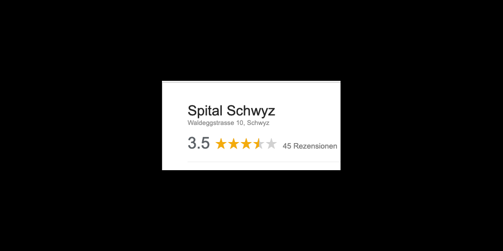Mittlerweile hat Google reagiert und die Bewertungen gelöscht. Von nun insgesamt 45 Rezensionen bleibt dem Spital eine Bewertung von 3.5 Sternen übrig.
