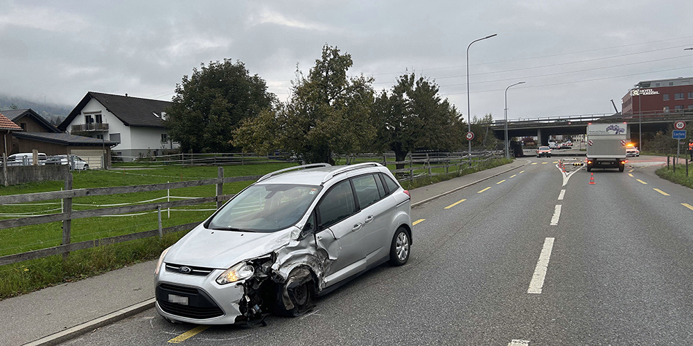 Ein 19-Jähriger fuhr mit einem PW von Lachen in Richtung Galgenen, wobei dieser in Lachen mit zwei Inselpfosten und einer Signalisationstafel auf der dortigen Mittelinsel kollidierte. Abschliessend kam es zu einer linksseitigen Streifkollision mit einem Lieferwagen, welcher sich zu diesem Zeitpunkt auf der Gegenfahrbahn im stockenden Verkehr befand.