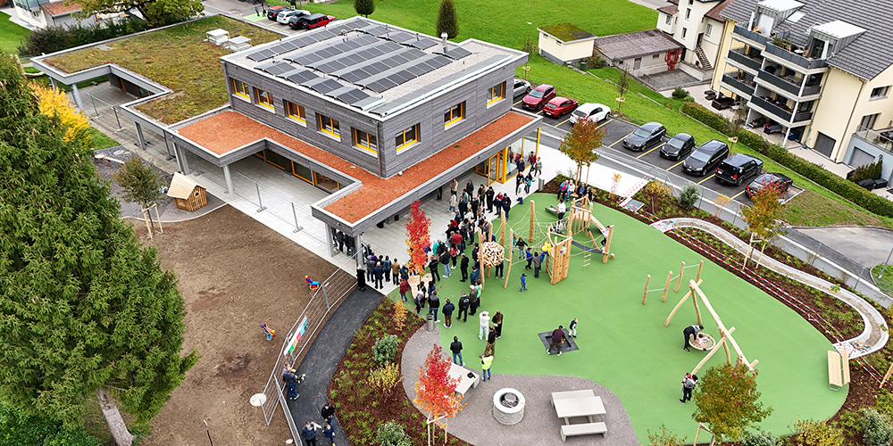 In ihren Festreden lobten Gemeindepräsident Othmar Büeler und Landammann Michael Stähli die gelungene Zusammenarbeit zwischen Gemeinde und Kanton. Gemeinderätin Leandra Spirig hob die Partnerschaft mit dem Schwingklub March-Höfe als «Win-Win-Lösung» hervor und betonte die Einbindung der Kinder bei der Spielplatzplanung. Der Neubau wurde anschliessend feierlich gesegnet.