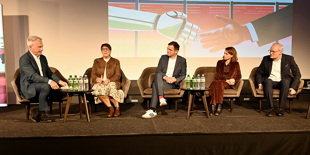 Thomas Truttmann, CEO der Max Felchlin AG, vertrat eine menschliche Sichtweise auf Unternehmertum. Die erfolgreichsten Schweizer Firmen seien Familienunternehmen – «enkelfähig» eben. Er schlug eine «Alchemie» vor: Die Zusammenführung von Gegensätzen könne zu gewinnbringenden Verbindungen führen. KI könne kein Vertrauen und keinen Sinn geben. Die Menschlichkeit sei die entscheidende Zutat: «Zukunft entsteht nicht nur durch Technik, sondern durch Menschen, die neu denken und tief handeln.»