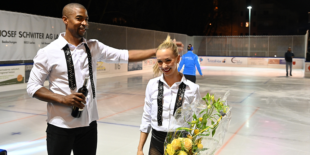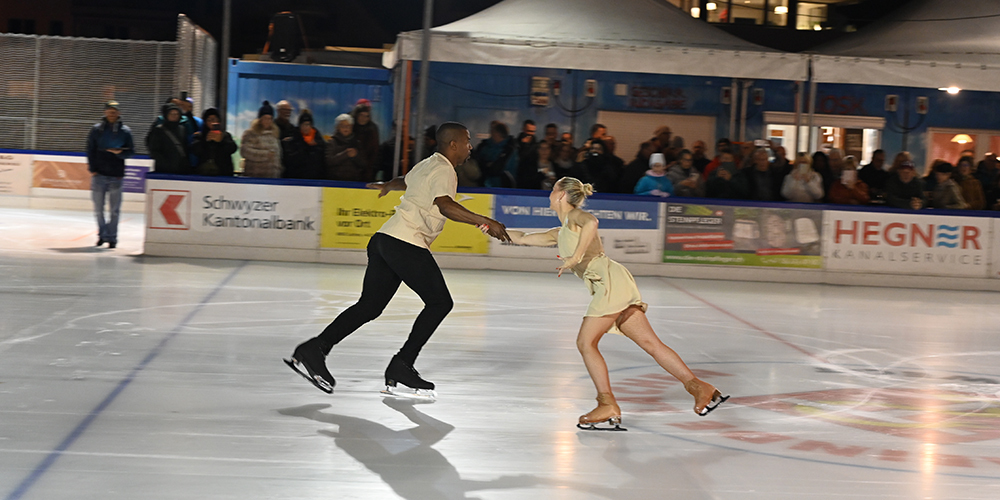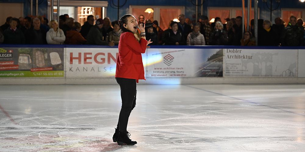 Bei der Eröffnung des Eisfeldes Lachen traten zwei Weltstars als Paareisläufer auf. Die Sängerin Céline Glue aus Pfäffikon umrahmte den Abend musikalisch. Wir haben die Bilder.