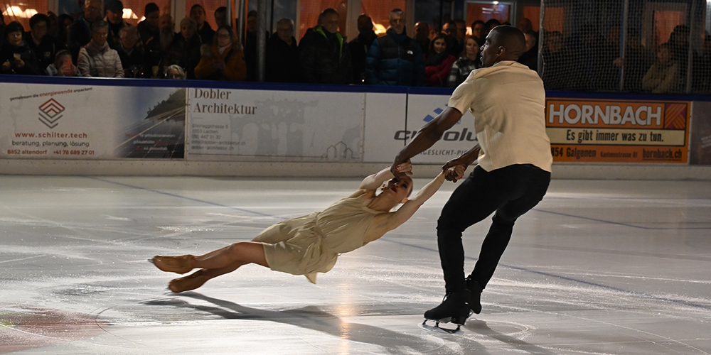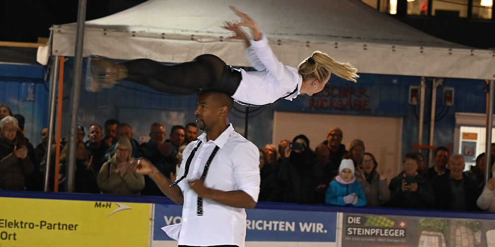 Die Weltklasseathleten Yannick Bonheur und Annette Dytrt zeigten gewagten Paareislauf.
