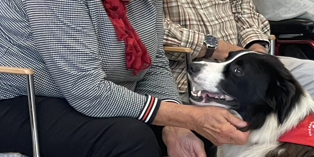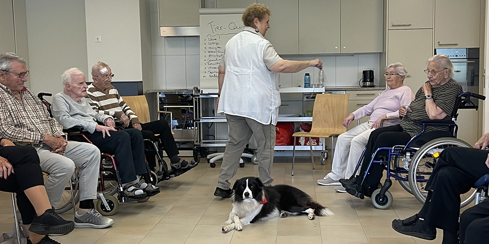 Fremde Hunde sollte man nicht einfach anfassen, Nando bildet eine Ausnahme. Der vierjährige Border Collie / Australian Shepherd wurde in Wangen auf einem Bauernhof geboren und war schon als Welpe freundlich und gehorsam gegenüber Menschen und Tieren. Seine Halterin Sandra Mächler-Flachsmann aus Lachen erkannte früh seine besondere Art. Obwohl er wie ein Hütehund aussieht, eigne er sich nicht zum Hüten.