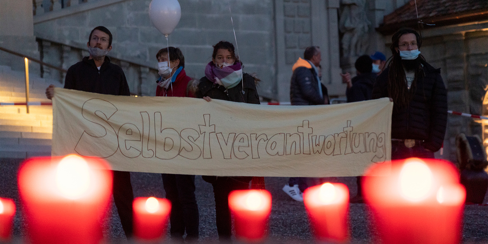 Auf dem Klosterplatz hielt Mitinitiantin Rachel Acklin eine Rede. «Wir sind für etwas, nicht gegen etwas», betonte sie gleich zu Beginn. «Wir müssen die Ängste der Menschen ernstnehmen. Abstand halten und Anstand haben.» Wenn sich jemand nicht wohl fühle, solle man im Dialog bleiben. Jeder Einzelne könne sich selber schützen, wenn er unsicher, krank oder sich gefährdet fühle. Es sei jetzt an der Zeit wieder zu Eigenständigkeit, Freiheit und Eigenverantwortung zurückzukehren. «Ich wünsche mir Freiheit im Denken, Freiheit im Handeln und Freiheit im Atmen.» Solidarität für ein Mit- und Füreinander. «Deshalb möchten wir heute aufstehen, eine Türe öffnen, einen Schritt nach draussen wagen und ein Licht entfachen.»