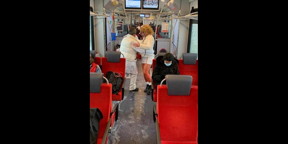 Trump war da, ein Mexikaner und ein Beduine, unter ritterlichem Begleitschutz traf gar eine Hexe auf dem Bahnhof Wollerauein – nicht auf dem Besen reitend, sondern gemessenen Schrittes. Ein paar unentwegteFasnächtlerinnen und Fasnächtler liessen es sich gestern nicht nehmen, trotz Restriktionen die Fasnacht zu eröffnen. Und so fehlte – der Situation geschuldet – das Gesundheitspersonal nicht. Ob Einhorn oder Ritter – geimpft wurden alle, entweder mit einer grossen Spritze oder mit einem kräftigen Schluck Alternativmedizin. Dannbestieg das illustre Grüppchen den Zug und machte sich auf die Fahrt ins Graue.
