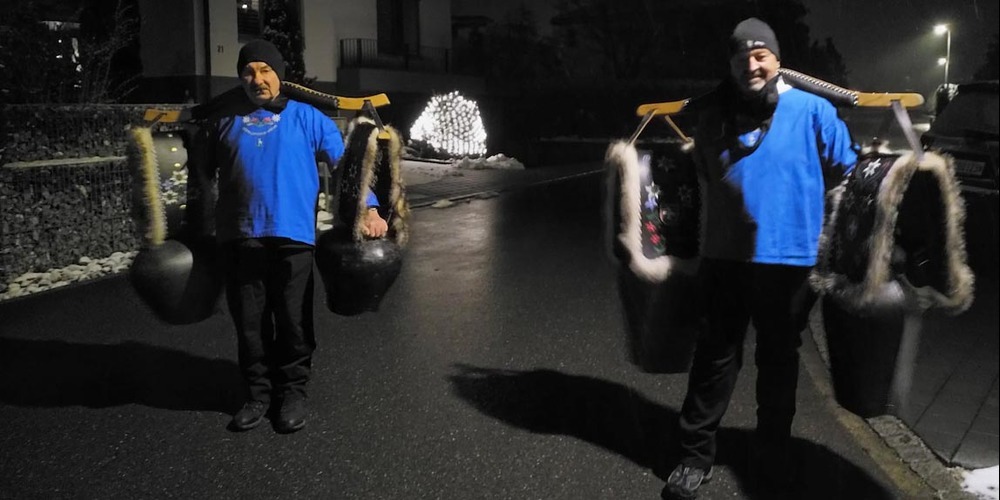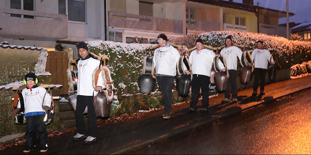 Lachen: Altendörfler Einscheller waren in einer kleinen Gruppe gestern Nachmittag unterwegs an der Lachner Hofstrasse. Bild: zvg4 / 4