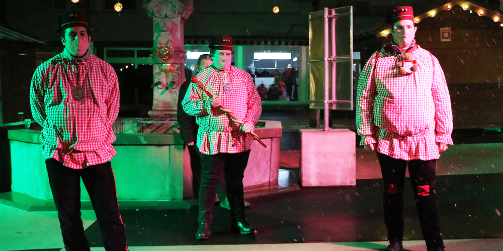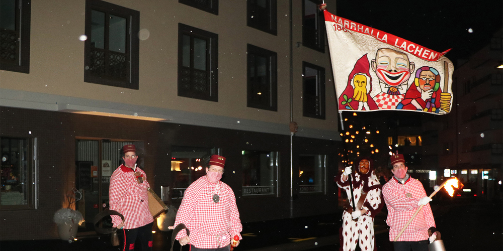 So leer wie gestern Abend waren die Märchler Dörfer an Dreikönigen selten. Wo zu «normalen» Zeiten Dutzende Schaulustige die Strassen säumen und die Fasnächtler die fünfte Jahreszeit einschellnen, herrschte gestern gähnende Leere. Zumindest fast: Denn in den Fasnachtshochburgen Siebnen und Lachen liessen sich unentwegte Fasnächtler ihre Leidenschaft nicht nehmen. So trafen sich die Präsidenten der acht Siebner Fasnachtsvereine zum traditionellen Fahnenaufzug, auch wenn diese nur auf halbmast gehisst wurden. In Lachen übergab der Gemeindepräsident symbolisch das Zepter der Narrhalla. In beiden Dörfern wie auch in Altendorf wurden diverse Butzi und Einscheller gesichtet – natürlich coronakonform.