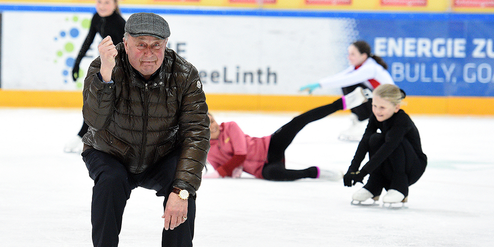Es ist eine fast gespenstische Stille im Rapperswiler Eisstadion. Nur ein paar Kufen erzeugen ein Geräusch auf dem Eis. Es ist Training. Eine ganze Woche lang. Aber es sind nicht die SCRJ Lakers, die sich auf die Pre-Playoffs vorbereiten. Es sind viele junge Eiskunstläuferinnen des Eislaufclubs Rapperswil-Jona und des Dübendorfer Eislaufclubs, die sich extra eine Woche lang von ihren Schulen haben dispensieren lassen. Ein grosser Aufwand. Doch wozu? Was ist der Anlass? Dem schnellen Auge entgeht fast, wer eigentlich für das Treiben auf dem Eis zuständig ist. Dann, bei genauerem Hinsehen wird offensichtlich, wer die jungen Mädchen und Damen dirigiert. Ein älterer Herr mit Schirmmütze. Ruhig gleitet er dahin, nickt ein bisschen mit dem Kopf, korrigiert diskret mit einer einfachen Handbewegung bei einer vorbeifahrenden Eisläuferin ein Detail. Doch wer ist dieser Mann? Es ist Alexei Mishin. Einer der absoluten Top-Trainer.