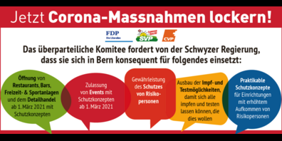 Ein überparteiliches Komitee bestehend aus CVP, FDP.Die Liberalen und SVP verlangt vom Schwyzer Regierungsrat Lockerungen der Corona-Massnahmen.