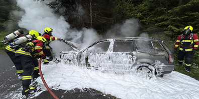 In Oberiberg geriet ein Personenwagen in Brand. Der 35-jährige Fahrer blieb unverletzt.