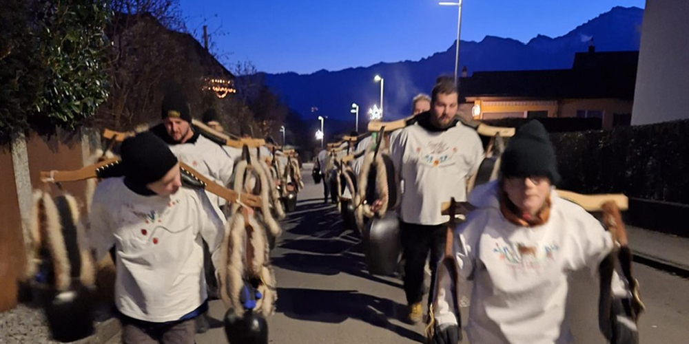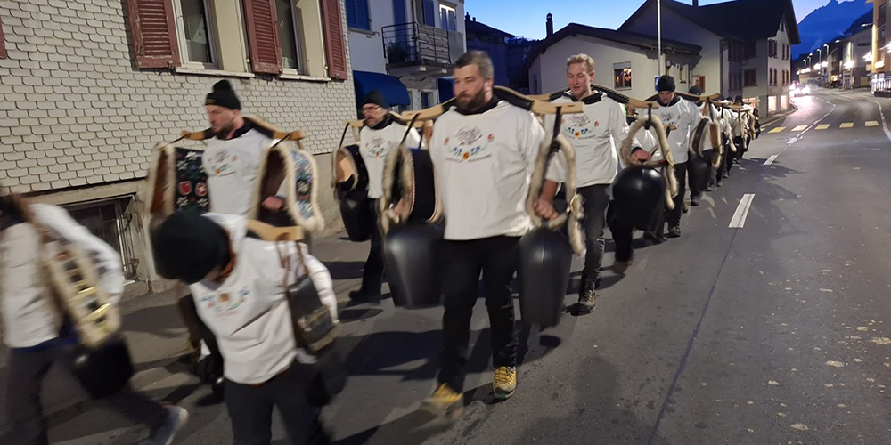 Silvesterausschellen ziehen Mitglieder und Gäste der Narrhalla Reichenburg mit grossen und kleinen Glocken durch das Dorf, um das neue Jahr einzuläuten.